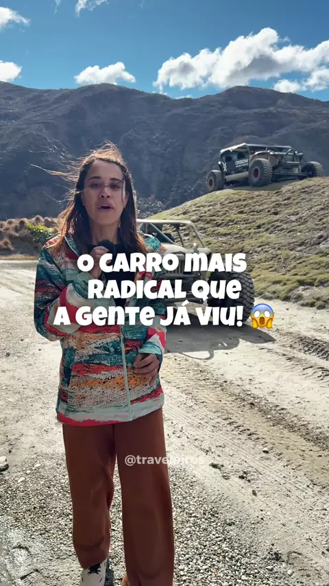 O carro mais radical que a gente já viu! Mas ainda bem que quem tava pilotando era o profissional da @oxbowadventureco e não o Renan, porque ele tem histórico com esse tipo de carro 🤣 Esse é mais um dos passeios que a gente recomenda em Queenstown que não tem o título de capital da Aventura no mundo em vão 🙌