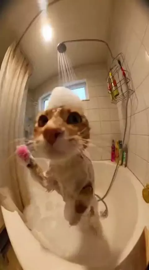 😻 gato cantando no chuveiro