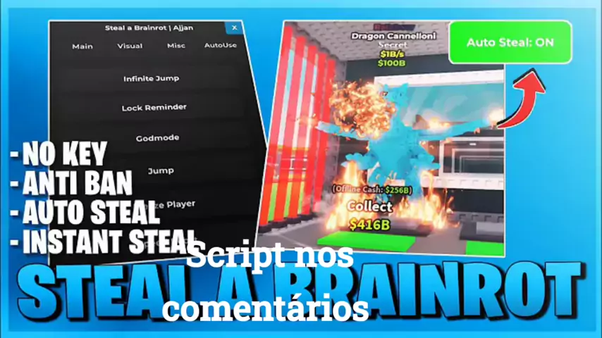 Steal A Brainrot Script *NO KEY* - Instant Steal, New Update, Brainrot Finder & Antikick & More!👾⛓️ #roblox #script #stealabrainrot #brainrot