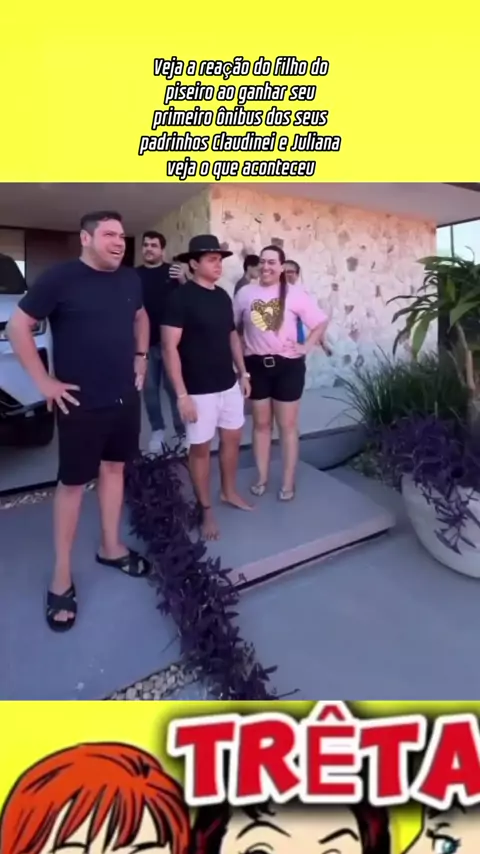 Veja a reação do filho do piseiro ao ganhar seu primeiro ônibus dos seus padrinhos Claudinei e Juliana