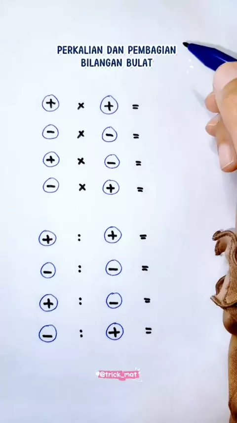 Perkalian dan pembagian bilangan bulat itu seperti dua sahabat yang saling berkaitan. ✨ Kalau paham aturan tanda, hitungannya jadi jauh lebih mudah! 📌 Ingat aturan sederhana ini: ➕ × ➕ = ➕ ➖ × ➖ = ➕ ➕ × ➖ = ➖ ➖ × ➕ = ➖ Aturan yang sama juga berlaku untuk pembagian bilangan bulat. Kuncinya cuma satu: tanda sama hasilnya positif, tanda berbeda hasilnya negatif. Dengan memahami konsep ini, soal perkalian dan pembagian bilangan bulat jadi lebih cepat dan tidak bikin bingung.