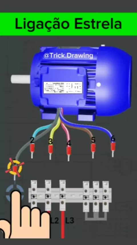como ligar motor trifásico com 6 terminais em 380V #eletrica #comandoseletricos #eletricaindustrial #trickdrawing #trickdrawingeletrica