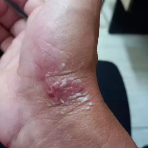 Famoso bixo geográfico!! infecção por larva migrans, um parasita que podem ser transmitido através das fezes de cães e gatos contaminados. Os sintomas incluem pontos vermelhos na pele, coceira que piora à noite e inchaço na pele. Os ovos do bicho geográfico podem entrar no organismo por meio de feridas ou cortes na pele, e penetrar na camada superior da pele, formando túneis avermelhados, semelhantes a um mapa sobre a pele.