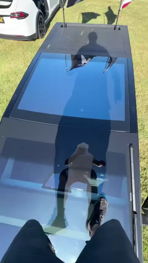 O Tesla Cybertruck foi construído para durar e o pára-brisa nos ajudou a subir nele um monte de vezes # # viral # Tesla # TSLA # teslacybertruck # cybertruck # windshield # americamade # builttough