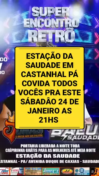 ESTAÇÃO DA SAUDADE DE CASTANHAL PÁ CONVIDA TODOS VOCÊS PARA VIREM CURTIR O NOSSO TRADICIONAL BAILE DA SAUDADE 🎶 NESTE SÁBADO 24 DE JANEIRO PORTARIA LIBERADA A FESTA 🥳 TODA RUA DUQUE DE CAXIAS BAIRRO SAUDADE 1 NÚMERO 509 CASTANHAL PÁ #bardotucamaia #Estaçãodasaudade #BOMPRAKWAI💥🚀✅
