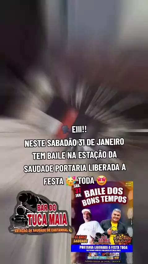 🗣EII!!! NÃO ESQUEÇAM! NESTE SABADÃO 31 DE JANEIRO TEM BAILE DA SAUDADE 🎶 🕺💃🥳🤩👍 PORTARIA LIBERADA A FESTA 🥳 TODA 👍😎 #bardotucamaia #Estaçãodasaudade #BOMPRAKWAI💥🚀✅