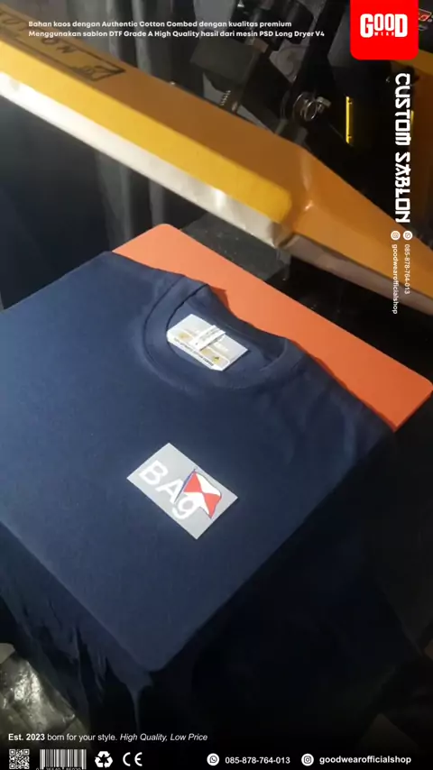Kaos Satuan Custom. Yang pasti berkualitas no kaleng kaleng. SEMAKIN BANYAK SEMAKIN MURAH. Detail : β€’ Pilihan Bahan - Cotton Combed 24s Premium - Cotton Combed 30s Premium - Cotton Combed 30s Kids - Polycotton 24s - Polo 24s Premium β€’ Sablon DTF Premium Dicetak dengan Mesin PSD Long Dryer 4 Head SERI TERTINGGI dengan Tinta Import 99% warna sama dengan desain. Rapi, Anti Retak anti Luntur anti pudar β€’ Pilihan Tipe Lengan - Pendek - Panjang Ukuran ready S, M, L, XL, 2XL, 3XL