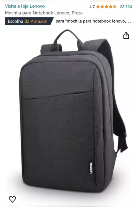 Mochila para Notebook Lenovo, Preta. Link na Bio