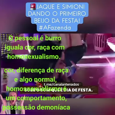 A Fazenda, simione e Jaqueline se beijam. não que aí seja o caso mas vi a Adriane Galileu defender que não se pode ser racista, homofóbico, etc. Gente idiota, comparam raça, cor com homoxexualismo. gente raça e algo normal, homoxexualismo é um comportamento, uma aberração, desvio da natureza cientificamente, espiritualmente possessão demoníaca