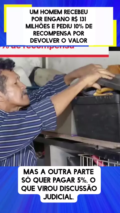 Um homem recebeu por engano R$ 131 milhões e pediu 10% de recompensa por devolver o valor, mas a outra parte só quer pagar 5%, o que virou discussão judicial.#ultimasnoticias #maisviews