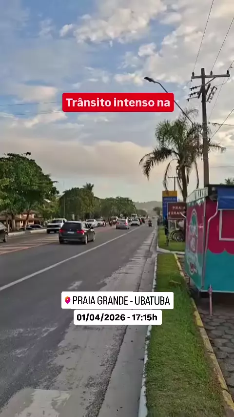 O trânsito está intenso, na praia Grande em Ubatuba, neste fim de tarde de quarta-feira, dia 01 de abril de 2026, às 17:15h. #praiaGrande #Ubatuba #litoralsp #trânsito #transitointenso