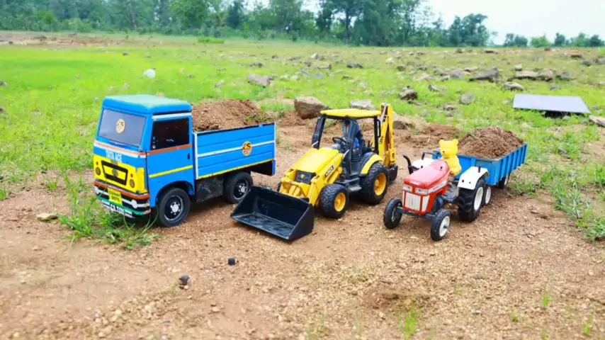 O menino gosta de jogar o jogo de resgate do caminhão no poço de lama.