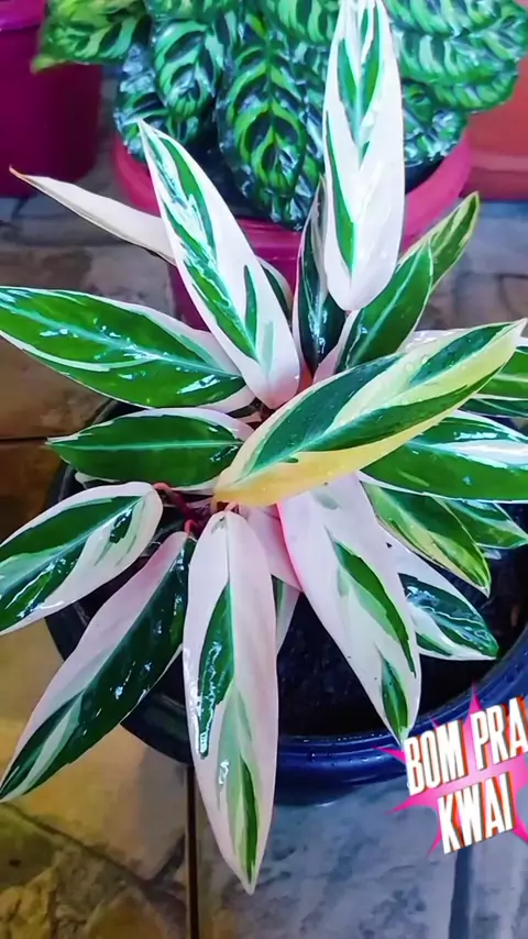 A Maranta Tricolor (Stromanthe thalia 'Triostar') é uma planta ornamental popular, conhecida por suas folhas vibrantes em tons de verde, creme e rosa, que se movem para cima à noite, como em oração, e são valorizadas por trazer boas energias e proteção para o lar. #Maranta_tricolor #Plantas