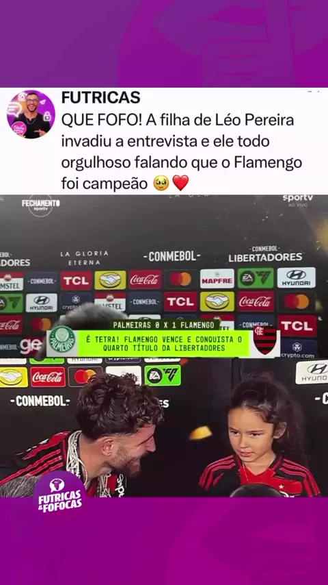 Filha de Léo Pereira abraça o pai durante entrevista e encanta telespectadores 😍 Siga @futricasefofocas para ver mais ☕️ (Vídeo/Reprodução: @/sportv)