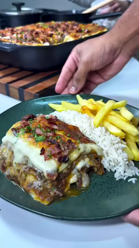 Lasanha de fraldinha 🥩🧀 Chega de lasanha cheia de presunto e creme de leite, bora aprender fazer uma lasanha boa de verdade com direito a massa fresca 🤤 Ingredientes: 2,5kg de fraldinha 2 cebolas 5 dentes de alho 3 tomates 1 xícara de extrato de tomate (Sal, pimenta do reino, páprica, alho em pó, cebola em pó, chimmichurri, salsa desidratada) 3 colheres de shoyu 200g molho de tomate Salsinha picada Massa: 500g de trigo 5 ovos 3 colheres de azeite Sal Molho bechamel: 4 colh...