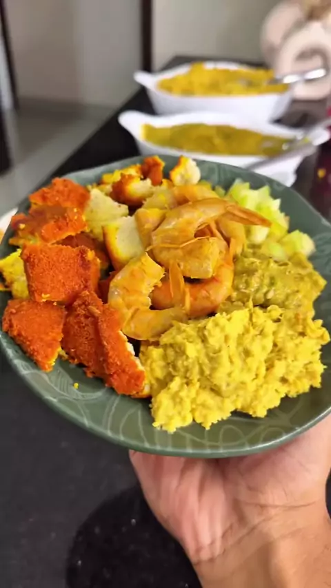 Bobó de camarão 🍤 Primeira vez que fiz e já entrou pra lista de receitas que quero repetir 😂❤️ Ingredientes: -600g de camarão (Sal, Pimenta do reino, páprica, Suco de limão, lemon pepper) -��1 cebola -1 pimentão amarelo -��1 tomate -500g de mandioca -2 conchas do caldo do camarão -200ml de leite de coco -Azeite de dendê -Coentro Caldo(casca de camarão, cebola, alho, talo de coentro, folha de louro, grãos de pimenta do reino, sal) . #receitas #dicas #cozinha #peixe #receitafácil #receit...