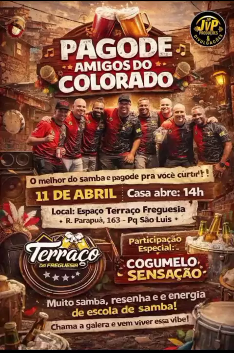 Dia 11 de Abril no Terraรงo da Freguesia o melhor do Samba e Pagode sรณ vem chama ๐Ÿ”ฅ JVP