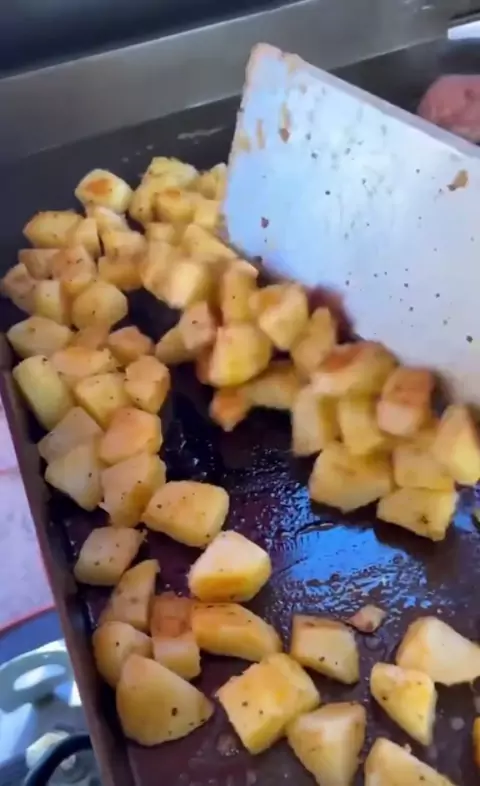 Café da manhã de sábado para minha tripulação # Blackstone # café da manhã # fruitsalad # potatoes #