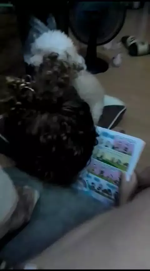 aqui o ano comecou assim, Helena lendo para o Pitoco e ele super interessado na historinha #poodle #poodlemini