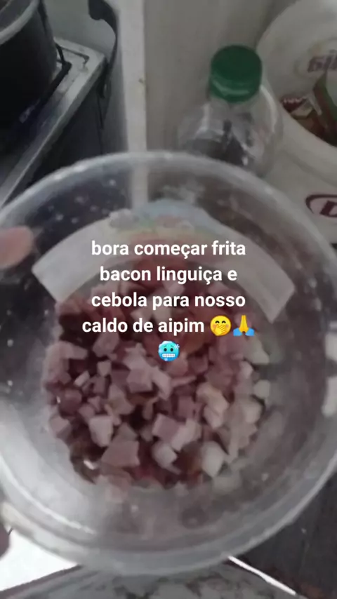 #fritando bacon cebola e linguicinha para nosso caldo de aipim para minha família 🙏🥶