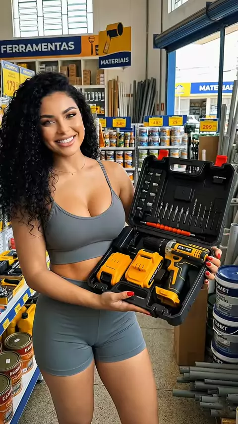 Furadeira elétrica de 48V. Acompanha duas baterias e um conjunto completo de acessórios. Potente força de impacto. Ideal para parafusar, furar, trabal