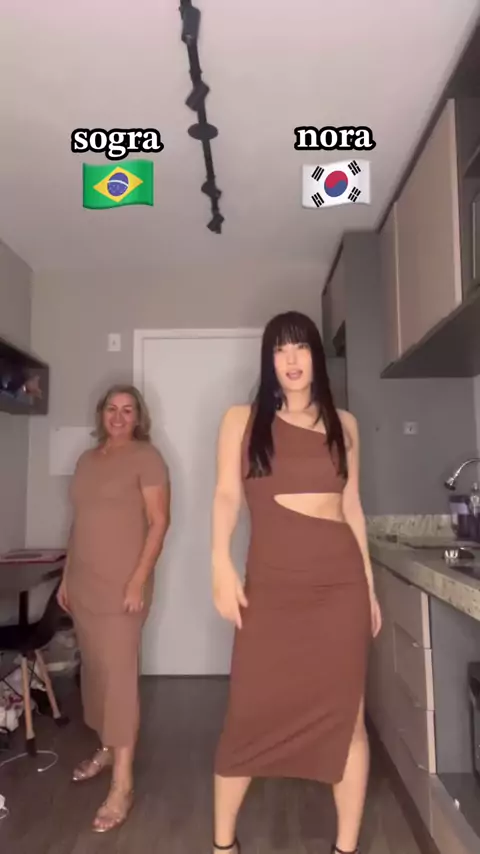 Happy Sunday, this is what happens when 🇰 🇷 I meet my mother-in-law 🇧 🇷 kkkkk 💃 💨 🤍. # dance # Korean # mother-in-law # family
