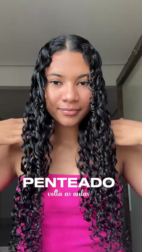 penteado volta as aulas, quem aí tava ansiosa pros penteados? ✚💕💅 pra ajudar, a duplinha perfeita para esse penteado foi a gelatina e o creme cachinhos nutridos com cheirinho de chocolate @Salon Line 😋🍫 promete alta definição, diminui o fator encolhimento e um brilho incríveeeel. é disso que vocês gostam? eu amo 🩷✚ #salonline #publiSL #oneSL #VeraoSL