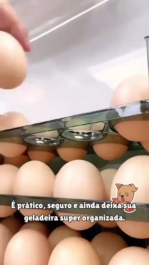 Chega de ovos amassados! Organize sua geladeira com este organizador incrível! #organizacaodageladeira #ovosfrescos #cozinhapratica #donadecasa #geladeiraorganizada