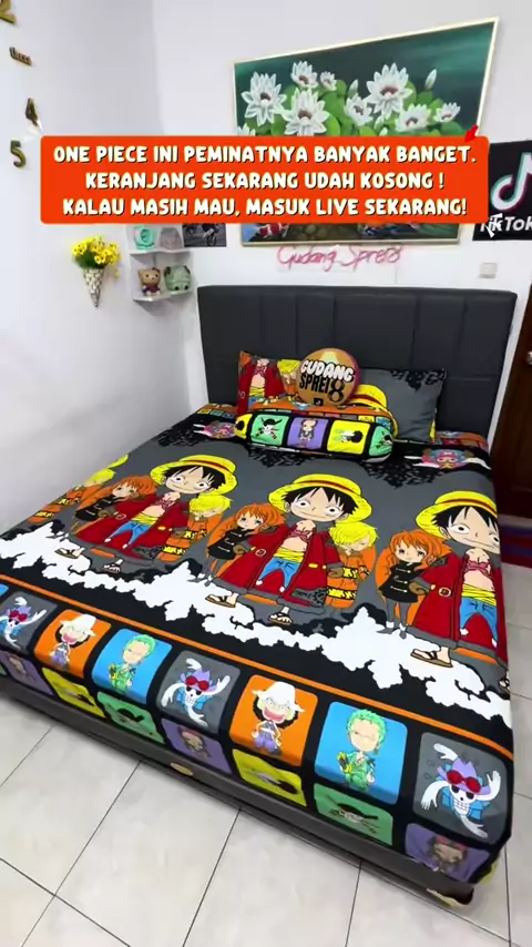 Info buat fans One Piece ⚠️ Kain motif ini tinggal sedikit banget. Begitu habis, nggak ada produksi ulang dalam waktu dekat.#sprei #spreimurah #spreikatun #spreilembut #spreidoublekaret