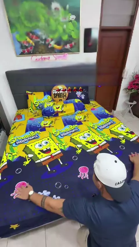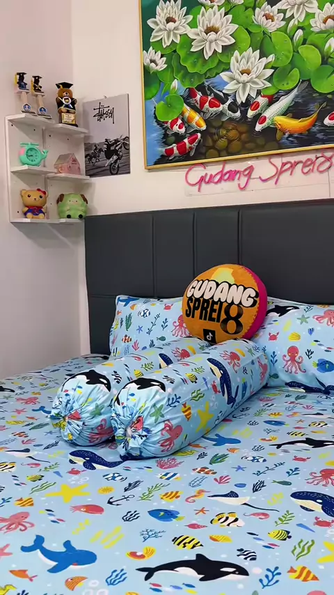 Biru lautnya bikin hati tenang 🐠✨ Motifnya lucu, bahannya nyaman, tidurnya makin nyenyak#sprei #spreimurah #spreidoublekaret