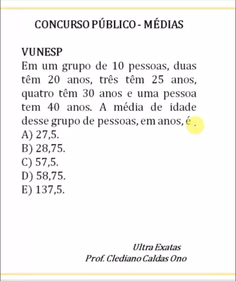 Qual é a média de idade do grupo? Vunesp #matemática #concursos #vunesp #media #raciocinio