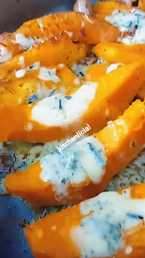 Almoço de Domingo! Abóbora assada com gorgonzola, combinação perfeita😋 #kitchenlicia #food #gorgonzola #abobora