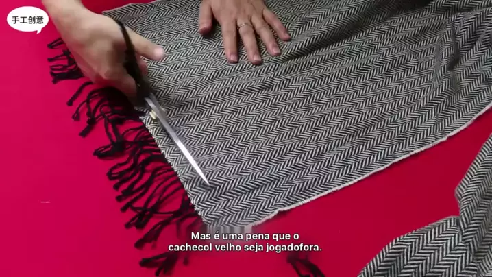 O cachecol de lã velho fora de época é encontrado, apenas uma transformação simples é necessária, e o produto acabado é bestie lutando por ele.