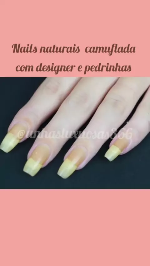 Nails naturais camuflada com designer e pedrinhas, #Unhas #nail #kwaimoda