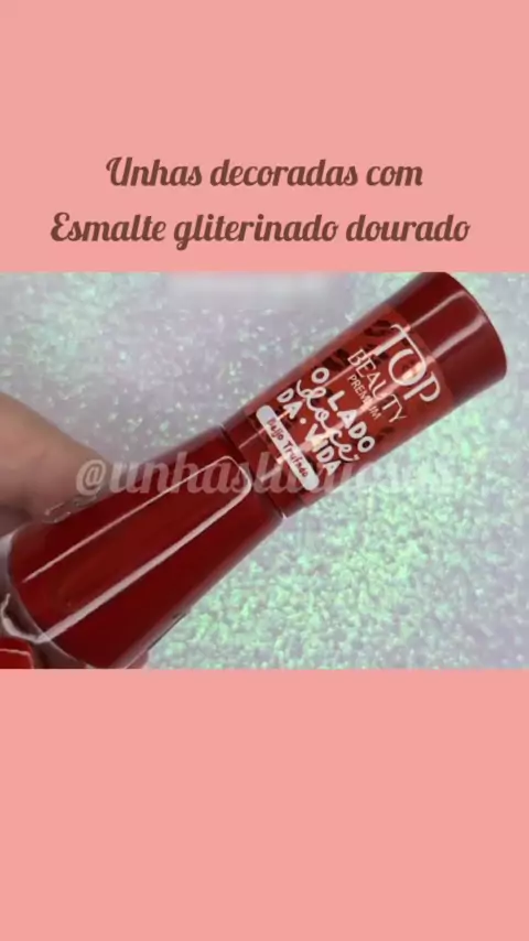 Unhas decoradas com esmalte gliterinado dourado, #nails #Unhas #fashion #nail #foyou