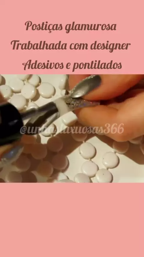 Postiças glamurosa trabalhada com designer adesivos e pontilhados, #Unhas #nail #kwaimoda