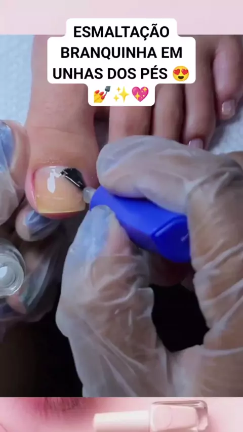 ESMALTAÇÃO BRANQUINHA EM UNHAS DOS PÉS 😍💅✨💖 #nailart #unhasdefibra #manicureporamor #nail #unhasemgel