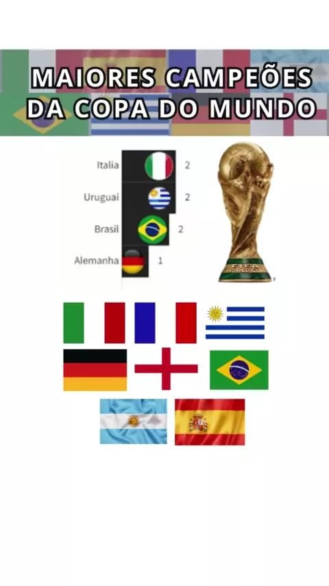 Maiores Campeões Da Copa do Mundo #Futebol #FutebolMundial #selecaobrasileira❤️ #esporte