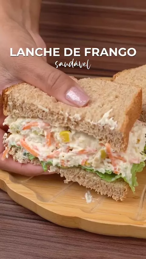 LANCHE DE FRANGO O melhor Sanduíche Natural! Perfeito para sua dieta saudável INGREDIENTES 2 pães de forma integral 1 xícara de frango desfiado e temperado 2 colheres de sopa de creme de ricota light 2 colheres de sopa de azeitona 2 colheres de sopa de milho 2 colheres de sopa de cenoura 2 colheres de sopa de salsinha e cebolinha Alface a gosto Tomate a gosto Crédito: @testereceitassaudaveis 💙 Livro de receitas; bit.ly/des #lanche #receitas #receitasfit #comida #viral