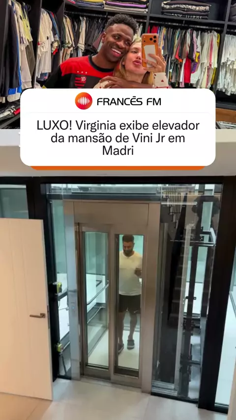 Virginia Fonseca mostrou aos seguidores mais um detalhe da mansão do namorado, Vini Jr, em Madri, Espanha. A influenciadora compartilhou um vídeo nos stories exibindo o elevador interno da residência do jogador do Real Madrid, que conecta os diferentes andares do imóvel. Nos vídeos, Virginia brincou com o amigo Hebert Gomes, que utilizava o elevador para ir até a academia da casa. #VirginiaFonseca #vinijr