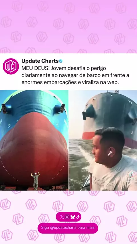 MEU DEUS! Jovem desafia o perigo diariamente ao navegar de barco em frente a enormes embarcações e viraliza na web. (Reprodução: Internet)