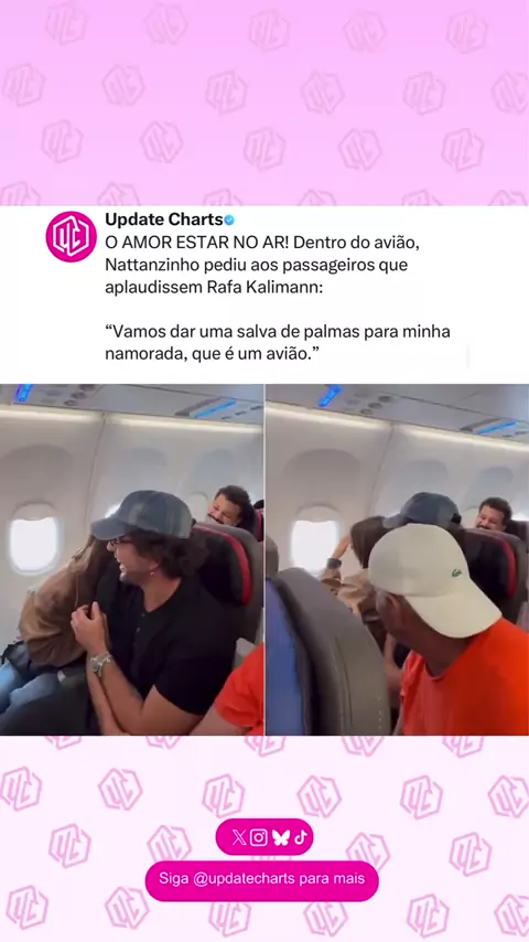 O AMOR ESTAR NO AR! Dentro do avião, Nattanzinho pediu aos passageiros que aplaudissem Rafa Kalimann: “Vamos dar uma salva de palmas para minha namorada, que é um avião.” O que acharam? Video:Reprodução