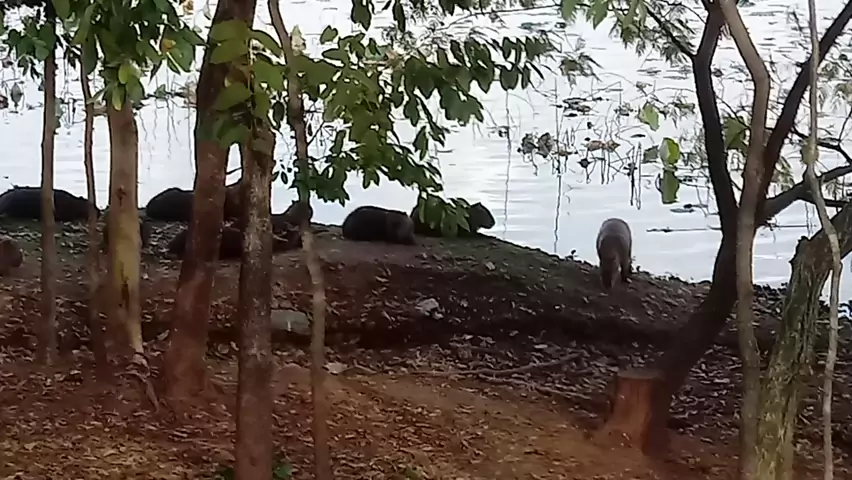 capivaras super manssas no lago em Cuiabá