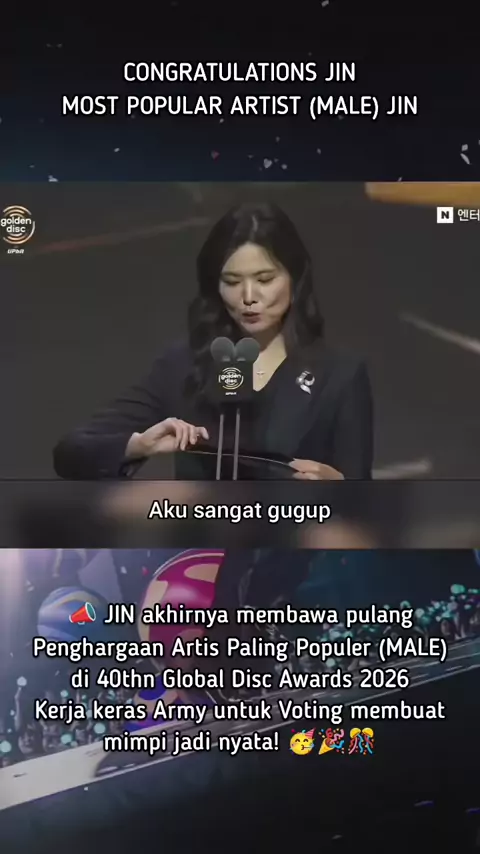 CONGRATS JIN.. 🥳 urusan voting army emg juaranya.. Best 👍#jin#goldendiskawards#kimseokjin