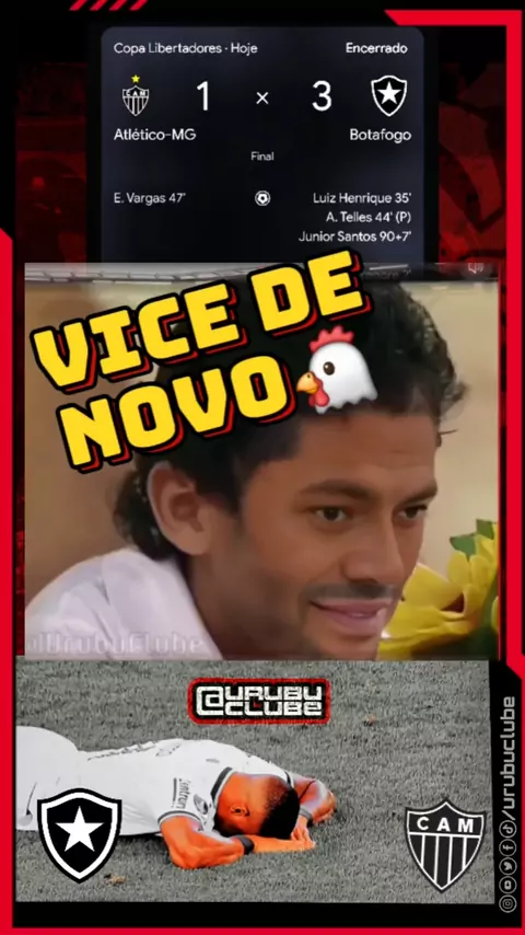Xiiiiiii parece que temos mais um VICE pro Galinho de Minas? Tenso heim? Kkkkkkk Agora todos os 12 tem grandes tem libertadores... Ganhou quem mereceu mais! Não conseguir vencer um time com 1 a mais o tempo todo? Que vergonha heim? #libertadores #libertadores2024 #botafogo #bfr #atletico @