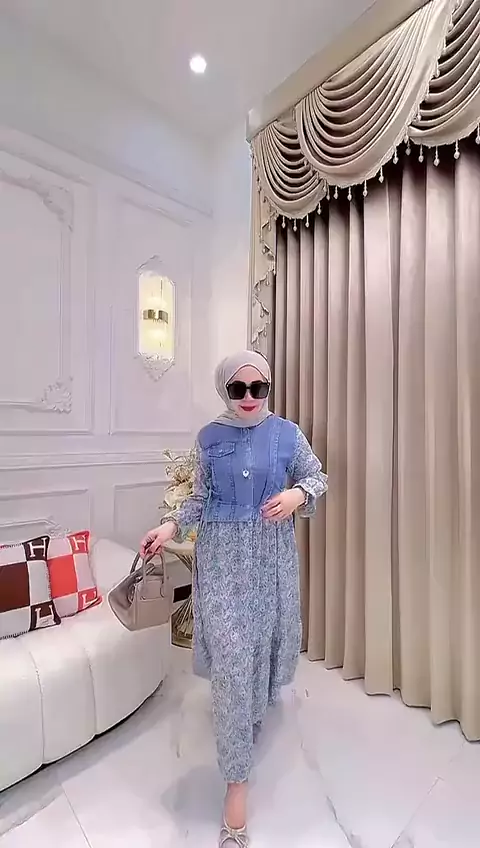 SUKIEE DRESS- Bahan Jeans denim kombinasi Rayon Bunga🩵#゚viral#dressjeans#dressrayon#dressmuslim#bajumuslimahmurah#dresscasual#dress#bajuviral