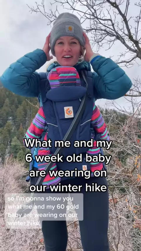 Meu essencial para caminhadas com com um bebê! Meu bebê tem agora 9 meses e ela ainda ama caminhadas na neve # winterhiking # momlife # momsofomtok # outdoorsy # outdoorsygals # hikingwithkids # utahmom