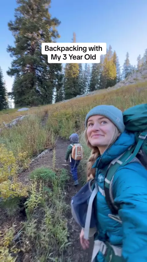 Mochilão com 3 anos. Meu pacote era pesado, mas eu me senti leve como uma pena sob aquele céu azul Minha criança # mochilão # hikingwithkids # adventurefamily # momlife # Momsof # hiketok