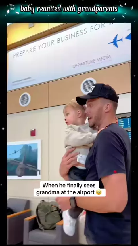 Bebê reunido com os avós no aeroporto # bebê # reunião # vovó # vovô # avós # momento # reação