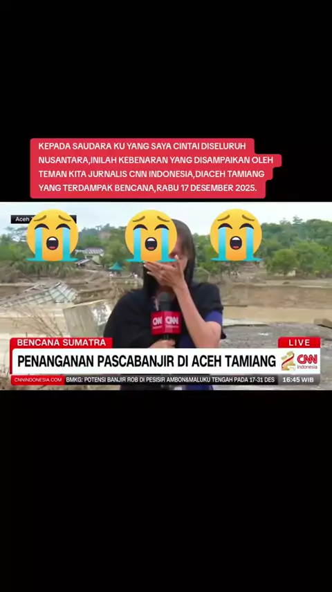 JURNALIS CNN INDONESIA TIDAK BISA MENAHAN AIR MATA UNTUK MENYAMPAIKAN KEBENARAN YANG TERDAMPAK BENCANA DI ACEH TAMIANG. #creatorsearchinsights #pppppppppppppppppppppp #virall #lewatberanda #masukberanda @CNA @Polreztanahlongsor @Bharada E